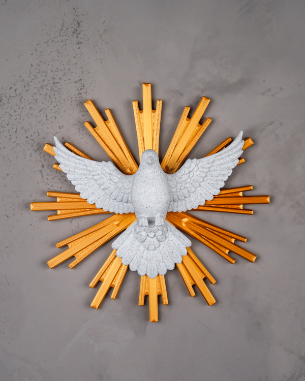 Une décoration murale représentant la paix, le Saint-Esprit et la présence divine.